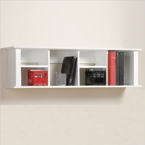 Description : The Wall Hanging Hutch can be mounted above Prepac Contemporary Desk or on its own as a floating bookcase for collectibles and accessories. It offers plenty of storage for books, papers, and computer disks. It has four adjustable shelves and fits binders perfectly. Installation is easy using our two-piece hanging rail system. Features: Wall hanging hutch in white finish Unique design with clean lines that provide a stylish contemporary look Four adjustable shelves Accommodates binders perfectly Matching contemporary desk sold separately Ready to assemble Easy installation with included two-piece hanging rail system Specifications Dimensions: 13 H x 48 W x 10.5 D Weight: 42.5 lbs