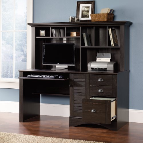 Features Sauder Harbor View Computer Desk with Hutch, Antiqued Paint 401634: