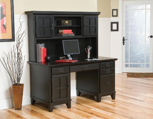 Features Home Style 5181-184 Arts and Crafts Double Pedestal Desk and Hutch, Black Finish: