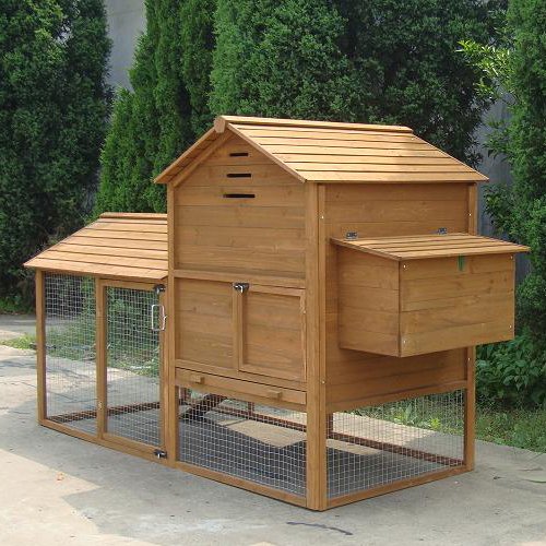 Description : Chicken Coop HJB112-FShipping Note: This item is sent via FedEx Economy Freight services. Please understand that this is a large item and will be delivered to you on a pallet. Many addresses may not be directly deliverable. Please be available for communication with FedEx Freight services.Specifications and FeaturesMaterial: Fir woodWaterbourne Lacquer: Cedar colorSize: 97"x35.5"x57" inchesLockable outside doorPull out drawer for easy cleaningVentilation slots in the side wallsModel: HJB112-FWalk up access ramp inside coopEasy to access hinged nesting boxHinged roof for easy food and water accessEasy to assemble comes with instructionsPre-assembled parts with screws for durability.Lockable outside door.Pull out drawer for easy cleaning.Vent...