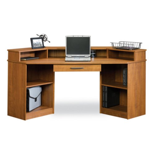 Description : The Sauder Camber Hill Corner Desk appeals to traditionalist decorators and draws the envy of modern connoisseurs, though they are welcome to join the winning team. The space-conscious will surely appreciate seven open shelves (two adjustable), a full-length perimeter shelf, and a storage drawer on metal runners. Strong laminate over engineered wood (MDF) construction ensures lasting quality, and a timeless oak finish seals the deal.There's a reason this style has been around for a while. It's been waiting for you.About SauderSauder is North America's leading producer of ready-to-assemble (RTA) furniture and the nation's fifth largest residential furniture manufacturer. Based in Archbold, Ohio, Sauder also sources furniture from a network o...