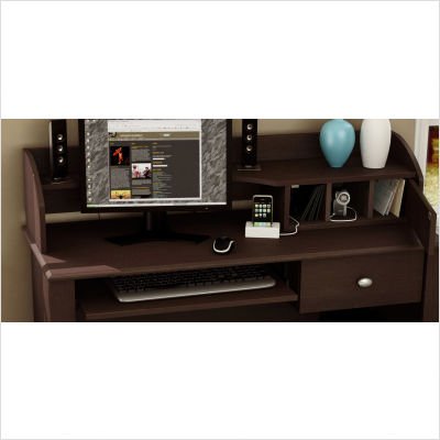 Description : 7259795 Home Office, Desk, Secretary Desk, Transitional Style, Compact Fit Collection, South Shore Furniture. The Compact-Fit Desk adds elegance and functionality to your office space, helping you infuse your work area with comfort and efficiency. Its unique charging station lets you connect a variety of items, from an MP3 player to a digital camera or even a phone. The storage area also gives you space to organize your mail, and a door conceals it all when you are finished. The luxurious chocolate finish adds warmth to your home's décor and is enhanced by sleek metal pulls. To ensure smooth operation, the desk drawer features metal slides, giving you easy access to your belongings, and a keyboard drawer helps you maximize desktop space.