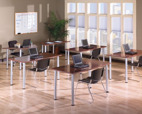 Description : Ideal for the company that needs to maximize the utilization of a multi-purpose room, Aspen Tables configure easily into diverse meeting or training configurations.Build a conference table, set up a classroom, or create interconnected workstations with Bush Furniture's Aspen tables. The five shapes--square, trapezoid, small rectangle, large rectangle, and corner connector--work together to make space-maximizing, user-friendly designs that can be changed as often as needed. Available in two finishes, the tables feature melamine work surfaces covered with a scratch- and stain-resistant Diamond Coat top layer and framed by protective PVC edge banding. The undersides of the tables are coated to prevent snagging, and a keyboard can be attached f...