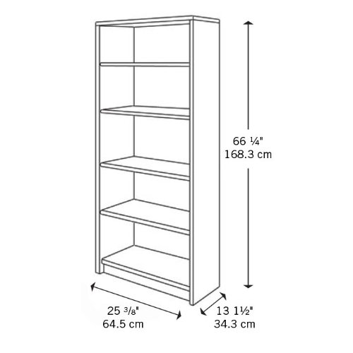 Description : The Bush Series A Wood Bookcase comes in a variety of attractive finishes and colors. This unit is easy to assemble and can help you maximize your storage space. This bookcase is 13.5 inches deep 66.3 inches high allowing for plenty of available shelving for books, household items, media, or decor. Two of the shelves in this piece are fixed to ensure that the product is as stable as possible. The other three can be adjusted for smaller or oversized items. We know you'll love this product. Features: Black finish with a Hansen cherry top 2 fixed shelves with an additional 3 which can be adjusted Height is identical to Advantage hutches The 13 1/2" depth is perfect for binders, books and other office or household items Overall dimensions: 66.3...