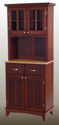 Description : Finish:Medium Cherry, Top Finish:Natural Constructed of hardwood and wood products in a natural finish with a natural wood top. Features two utility drawers and two wood framed cabinet doors with an adjustable shelf for plenty of inside storage. Brushed steel hardware. Hutch features two wood framed, plexiglass doors with an adjustable shelf inside for plenty of storage. Dimensions: Server size: 29.25' x 15.875' x 35.5' high. Wood top size: 29.25' x 15.875' x 0.75' high. Hutch size: 31.25' x 12.5' x 36' high. Assembly required.