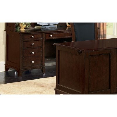 Description : 1381-22 Features: -Drop front pull out center drawer with pencil tray.-Box with adjustable dividers and file drawer in left pedestal.-Box drawer and CPU compartment with adjustable shelf in right pedestal.-CPU compartment is ventilated.-Cable accessible. Construction: -Constructed of cherry veneer with poplar solids. Color/Finish: -Dark Chocolate finish.-Finish has a slight amount of dry brushing and burnishing to give the finish depth and character. Dimensions: -Overall dimensions: 30'' H x 66'' W x 24'' D.