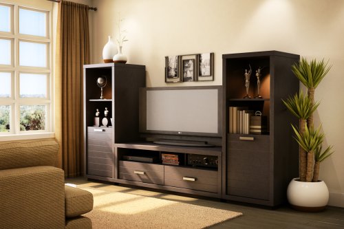 Description : The Skyline bookcase fills the need for storage and for fine-looking furniture in your home. Its generous open storage space adapts to the size of your display items thanks to an adjustable shelf, and a built-in light showcases your most favored pieces. A second adjustable shelf behind the door helps you make the most of the enclosed storage space. The rich chocolate finish adds warmth to your surrounding décor and is enhanced by simple yet enticing drawer front grooves and a sleek metal handle. For the ultimate in stability, the bookcase comes with an angle bracket for attachment to a wall, giving you peace of mind as well as lasting style. (Model 4359651).