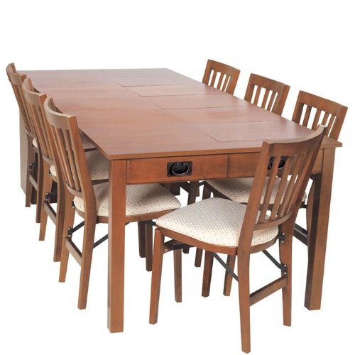 - Pull out on two false drawer handles for storage & five butterfly leaves